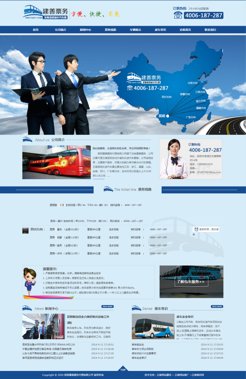 昆明建善票務代理有限公司旗下設有建善票務,公司主要代理云南昆明發(fā)往外省的長途汽車票等。公司誠信經營,注重客戶服務,盡最大的能力幫你解決出行的難題。