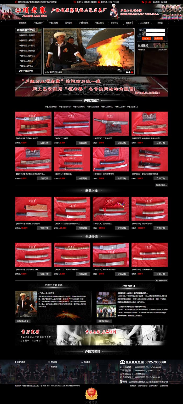 項老賽從小跟著父親學(xué)習(xí)打刀的技藝,他聰慧好學(xué),得到父親的真?zhèn)鳎?14 歲就可以自己獨(dú)立操作。在學(xué)習(xí)父親打刀技藝的同時,項老賽不斷鉆研,在刀的外觀、質(zhì)地、圖案、包裝上下苦功夫。通過不斷改進(jìn),印有八卦圖樣 - 項氏刀 - 的各類刀具,由于做工精致、質(zhì)地精良、外形美觀、別具特色,深受人們的喜愛,遠(yuǎn)銷內(nèi)蒙、青海、西藏、四川等地,在緬甸、泰國、印度和日本等國也有一定的市場。如今產(chǎn)品多達(dá) 50 多種 120 余個花色,有鐮刀、水果刀、菜刀、腰刀、斧頭、砍柴刀、剝皮刀、剔骨刀、狩獵刀、屠宰刀等生活工具刀,還有樸刀、馬刀、景頗刀、苗刀、緬刀和藏刀等民族工藝禮品刀;刀把有棕絲把、酸枝木把、印度紅木把、花梨木把、雞翅木把、烏木把、小葉紫檀木把、鹿角把、牛角把、鋼把、銅把和緬銀把等;刀鞘主要有紅豆杉、楠木、烏木、緬銀等半殼或全殼等,種類繁多,工藝獨(dú)特。