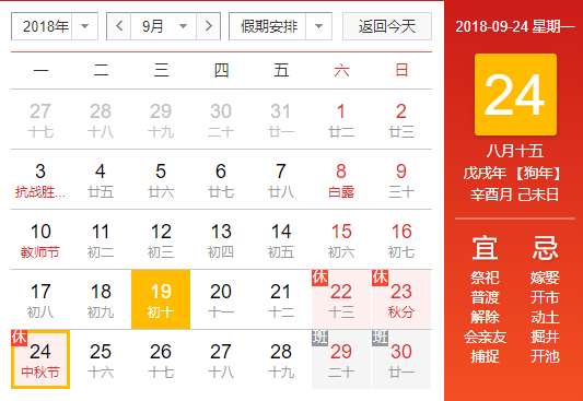 2018年中秋節(jié)是9月24日(星期一),中秋節(jié)放假時(shí)間為2018年9月22-24日,放假三天。